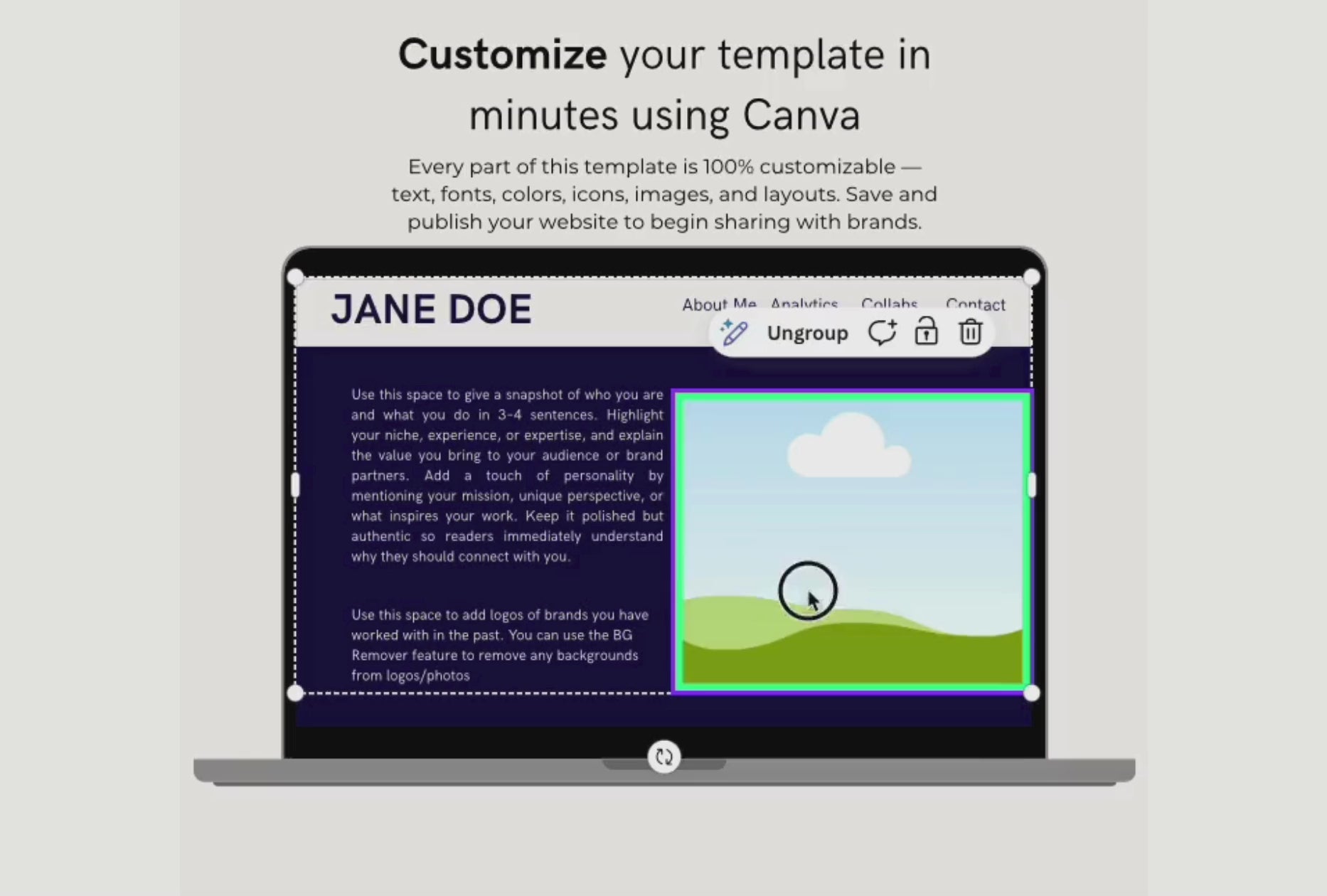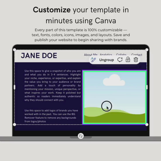This fully customizable template is beginner-friendly and easy to edit, making it perfect for creators who want a polished media kit without the overwhelm. Update colors, fonts, images, and text to match your personal brand and share it as a PDF or Canva website.